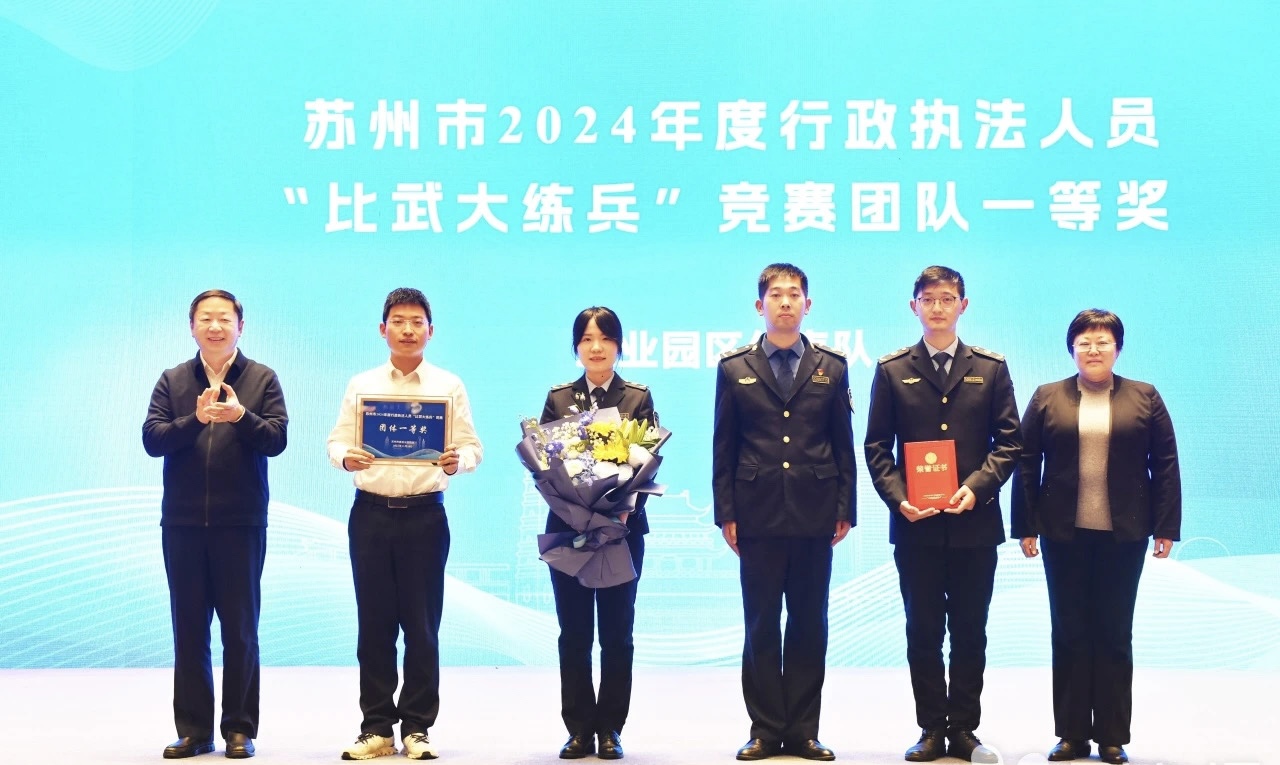 三是以“訓(xùn)”賦能,推進(jìn)行政執(zhí)法隊(duì)伍專業(yè)化。協(xié)同并進(jìn),線上組織覆蓋全區(qū)1163名行政執(zhí)法人員的年度輪訓(xùn),線下舉辦“學(xué)習(xí)貫徹習(xí)近平法治思想?著力提升基層法治能力專題培訓(xùn)班”,邀請(qǐng)條線專家、資深法官、高校教授等現(xiàn)場(chǎng)授課,累計(jì)培訓(xùn)法治干部150余人次。2024年,園區(qū)各行政執(zhí)法單位組織業(yè)務(wù)理論知識(shí)、執(zhí)法技能實(shí)務(wù)、法律法規(guī)規(guī)章等培訓(xùn)600余次,培訓(xùn)執(zhí)法人員及輔助人員8000余人次,促進(jìn)行政執(zhí)法隊(duì)伍專業(yè)能力整體提升。在蘇州市組織的2024年度行政執(zhí)法人員“比武大練兵”競(jìng)賽中,園區(qū)代表隊(duì)榮獲團(tuán)隊(duì)一等獎(jiǎng)。