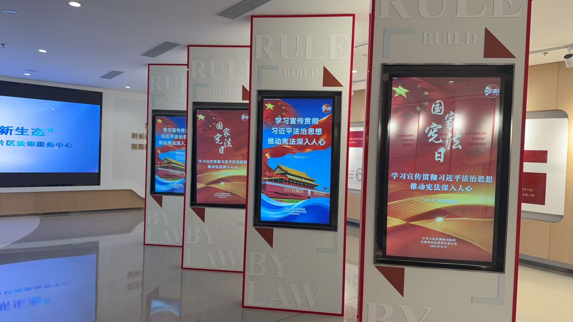 各單位依托門戶網(wǎng)站、微信公眾號等新媒體平臺(tái),法治陣地、商業(yè)中心、載體樓宇等公共電子屏開展憲法宣傳“萬屏聯(lián)播”,構(gòu)建全方位、多層次的線上普法格局,讓憲法精神在指尖流轉(zhuǎn)、深入人心。園區(qū)司法局依托蘇州自貿(mào)片區(qū)法宣中心展播憲法主題海報(bào)。園區(qū)宣傳和統(tǒng)戰(zhàn)部、園區(qū)行政審批局、陽澄湖半島旅游度假區(qū)等單位在草鞋山公園、辦事服務(wù)大廳、綜合治理中心等地張貼海報(bào)。園區(qū)法院、園區(qū)生態(tài)環(huán)境局等依托新媒體矩陣發(fā)布憲法知識(shí)、普法漫畫。婁葑司法所推出《拆盲盒,學(xué)憲法》專題短片,從民生視角解讀憲法權(quán)益。