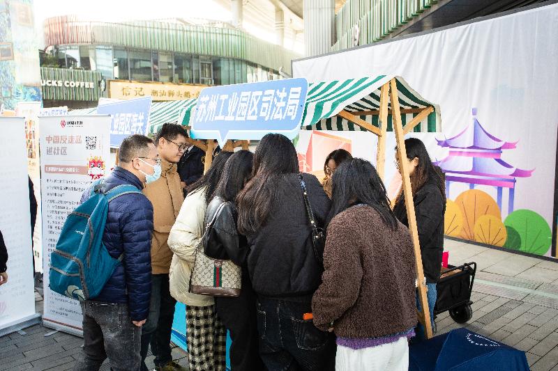 園區(qū)司法局聯(lián)合園區(qū)海關(guān)、金雞湖街道等在圓融時(shí)代廣場舉辦“憲在身邊 法潤金雞”法治市集,開啟憲法宣傳周系列活動(dòng)序幕。現(xiàn)場設(shè)置10個(gè)普法攤位,吸引近230名群眾參與,通過憲法知識(shí)問答、法律咨詢解答、案例解讀、游戲互動(dòng)等形式宣傳憲法、反詐防非、掃黑除惡等法律知識(shí),并提供暖心熱飲和法治手作,實(shí)現(xiàn)“普法宣傳+惠民服務(wù)”零距離。積極響應(yīng)市局“弘揚(yáng)憲法精神,堅(jiān)定法治信仰”主題活動(dòng),在獅山大劇院設(shè)置“法潤園區(qū)·聚力前行”普法攤位,提供的法治帆布袋、文創(chuàng)冰箱貼等法治產(chǎn)品備受歡迎。