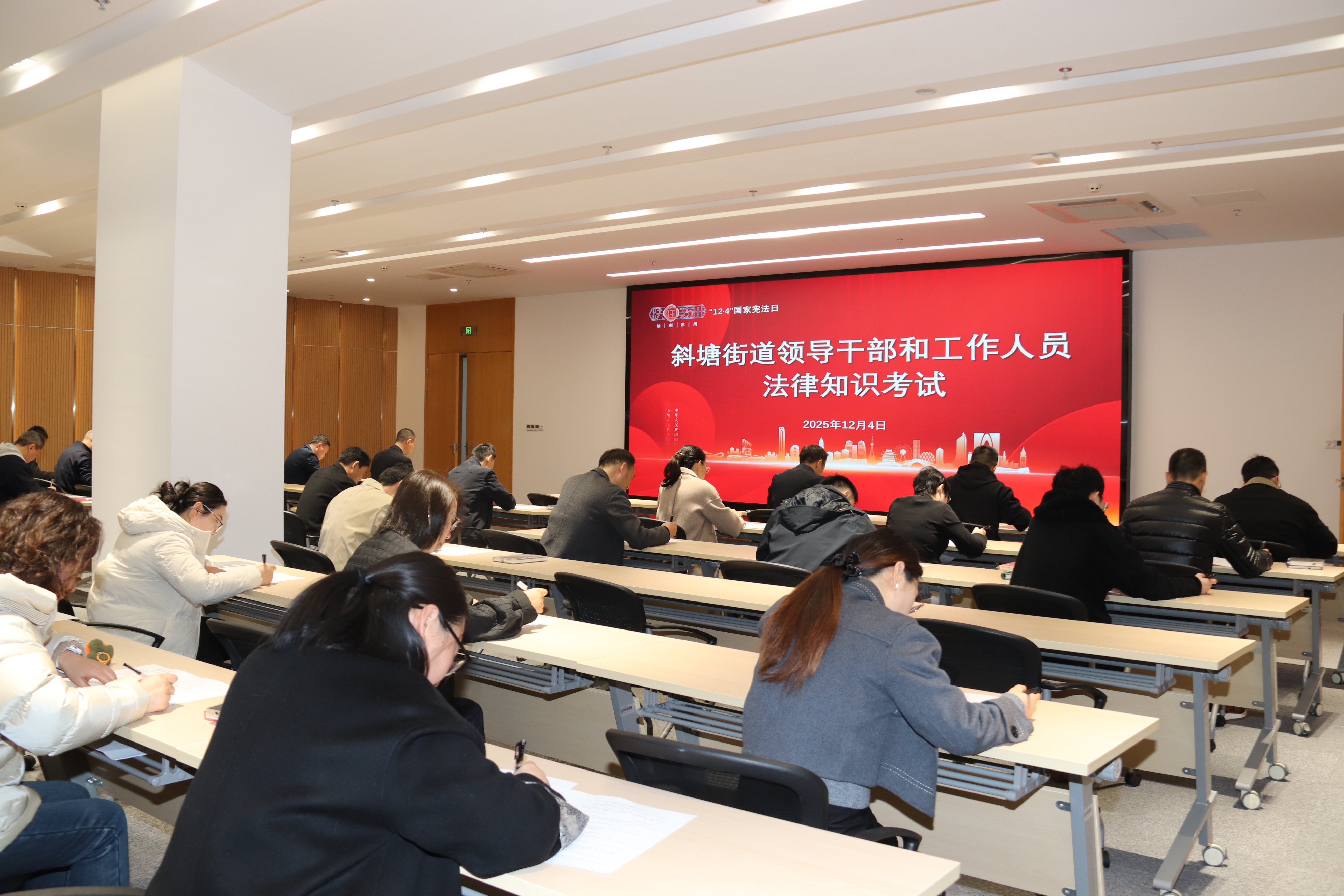 園區(qū)法院、園區(qū)檢察院組織新入額法官、政法干警開展國家憲法日宣誓活動(dòng)。園區(qū)金融發(fā)展和風(fēng)險(xiǎn)防范局通過《中華人民共和國憲法》條文學(xué)習(xí)、宣傳片觀看、交流研討等方式強(qiáng)化干部依法履職意識(shí)。園區(qū)稅務(wù)局將憲法納入黨委中心組和各黨支部“三會(huì)一課”、主題黨日等重點(diǎn)學(xué)習(xí)內(nèi)容,結(jié)合青年干部座談會(huì)開展專題學(xué)習(xí)研討。綜合行政執(zhí)法局各街道執(zhí)法大隊(duì)通過專題會(huì)議、知識(shí)競賽、普法講座等形式提升執(zhí)法人員法治素養(yǎng)。斜塘街道開展“憲法進(jìn)機(jī)關(guān)”帶頭考法活動(dòng)。唯亭街道舉辦2025年“12·4”國家憲法日活動(dòng)暨“法潤澄南 善治唯亭”總結(jié)大會(huì),搭建高效交流學(xué)習(xí)平臺(tái)。金雞湖街道在辦公區(qū)域打造憲法學(xué)習(xí)場景,組織憲法圍讀,專題研習(xí)《中華人民共和國法治宣傳教育法》,探索普法新路徑。