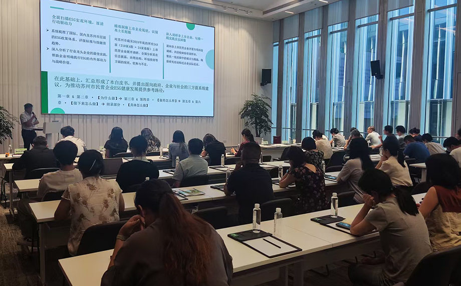 活動上,園區(qū)城市發(fā)展研究院分享了ESG發(fā)展近況及園區(qū)ESG領(lǐng)域的特色亮點,展示了ESG公共服務平臺的相關(guān)功能模塊。蘇州市企業(yè)可持續(xù)發(fā)展聯(lián)合會介紹《蘇州市民營企業(yè)ESG發(fā)展白皮書》,圍繞白皮書編制背景與核心內(nèi)容進行解讀。