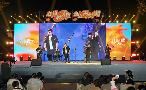From the moonlit Qingjian Lake, a gentle breeze carried the sweet fragrance of osmanthus. The audience, seated or standing, sang along to the familiar tunes, filling the air with warmth and resonance.