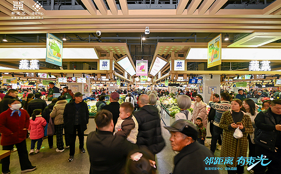 A key feature is the nearly 3,200-square-meter farm produce market with 55 stalls providing all daily groceries. An intelligent system is adopted for information updating and management.