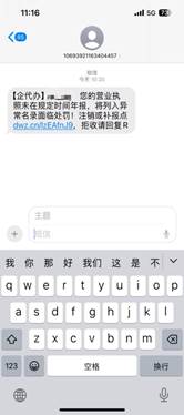 通過電話、短信、微信廣告等,以未年報(bào)將列入異常名錄面臨處罰為由,推送信息、誘導(dǎo)點(diǎn)擊鏈接,進(jìn)入設(shè)定界面,要求簽約協(xié)議并支付錢款進(jìn)行年報(bào),收取幾十到幾百不等的費(fèi)用。