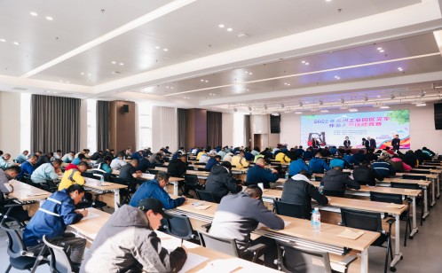 競賽設置預賽與決賽兩個階段,全方位檢驗選手綜合素養。預賽環節采用“理論+實操”的考核模式:理論測試涵蓋叉車安全操作規程、設備日常維護、應急處置流程及相關法律法規知識,重點考察選手安全理論功底與合規意識;實操項目為電動平衡重叉車帶托盤競速繞樁,選手需在5分鐘內完成“叉取托盤—轉運堆疊—指定存放—倒庫停車”全流程,考驗精準操控與高效作業能力。經綜合評定,40名選手憑借過硬實力脫穎而出,晉級決賽。