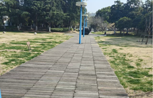 中央公園木棧道建成使用多年,因木龍骨基礎(chǔ)結(jié)構(gòu)老化腐蝕,導(dǎo)致上層賈拉木板出現(xiàn)松動、起伏及緊固件外露等問題,既影響市民游園安全,也有損景觀整體風(fēng)貌。經(jīng)專業(yè)技術(shù)評估確認(rèn),原鋪設(shè)的賈拉木板材雖歷經(jīng)風(fēng)雨,但其材質(zhì)優(yōu)良,主體部分性能仍滿足使用要求,具備較高再利用價(jià)值。基于此,確立了“最大化利用舊材、系統(tǒng)性加固基礎(chǔ)、精細(xì)化修繕更新”的改造原則。