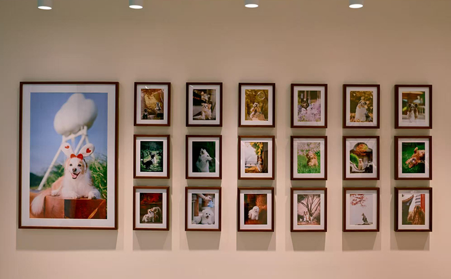 不同于“初二家”的萌趣溫馨,隔壁的“芒果寵物攝影”則是滿(mǎn)滿(mǎn)的文藝范兒和“ins風(fēng)”,店內(nèi)的墻上掛滿(mǎn)了毛孩子們?cè)诟鞯厝鰵g的藝術(shù)寫(xiě)真,內(nèi)景棚也根據(jù)不同主題布置得十分精美。“我們的攝影師擁有豐富的寵物拍攝經(jīng)驗(yàn),并且會(huì)基于每只寵物的習(xí)性進(jìn)行引導(dǎo)拍攝。”品牌主理人蝦仁認(rèn)為,家長(zhǎng)與毛孩子相處的每一個(gè)瞬間都是值得被記錄的幸福時(shí)刻:“我們想用影像記錄下毛孩子們的美好。”
