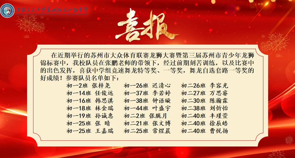 霸氣登頂!西附初中龍獅隊(duì)勇奪蘇州市錦標(biāo)賽特等獎(jiǎng)